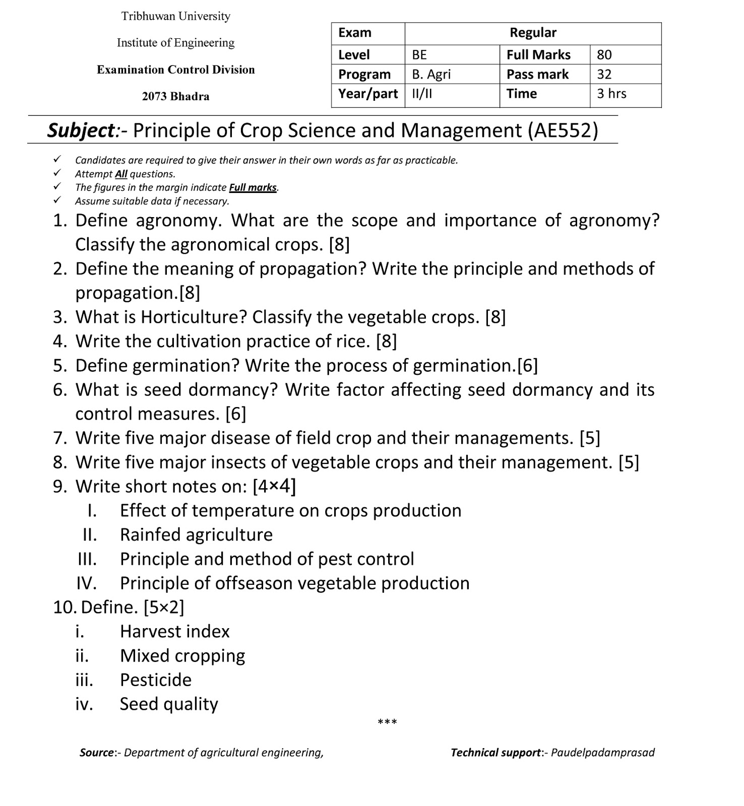 are the scope and importance of agronomy? Classify the agronomical crops. [8]